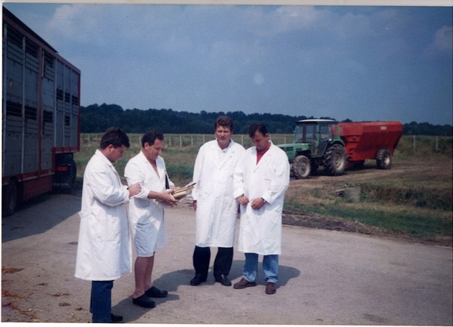 Fotografija gospodina Hichama Naoula s četiri kolege tijekom obavljanja posla veterinarskog inspektora, za vrijeme držanja junice u karanteni na jednoj od farmi u Potoku, kod Popovače.