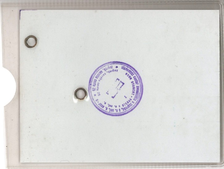 Iskaznica Studentskog servisa g. Hichama Naoula, serijski broj 003321, izdana za apsolventsku godinu studija na Veterinarskom fakultetu u akademskoj godini 1979./1980.