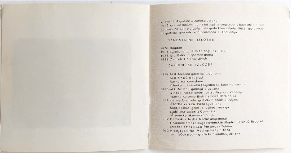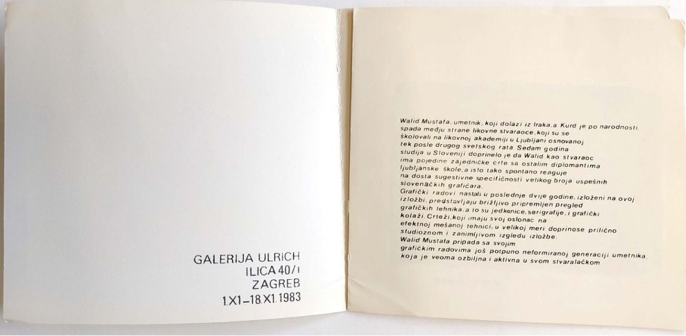Walid Mustafa, Grafike i crteži; Katalog izložbe održane u Galeriji Ulrich 1.XI.-18.XI.1983.
